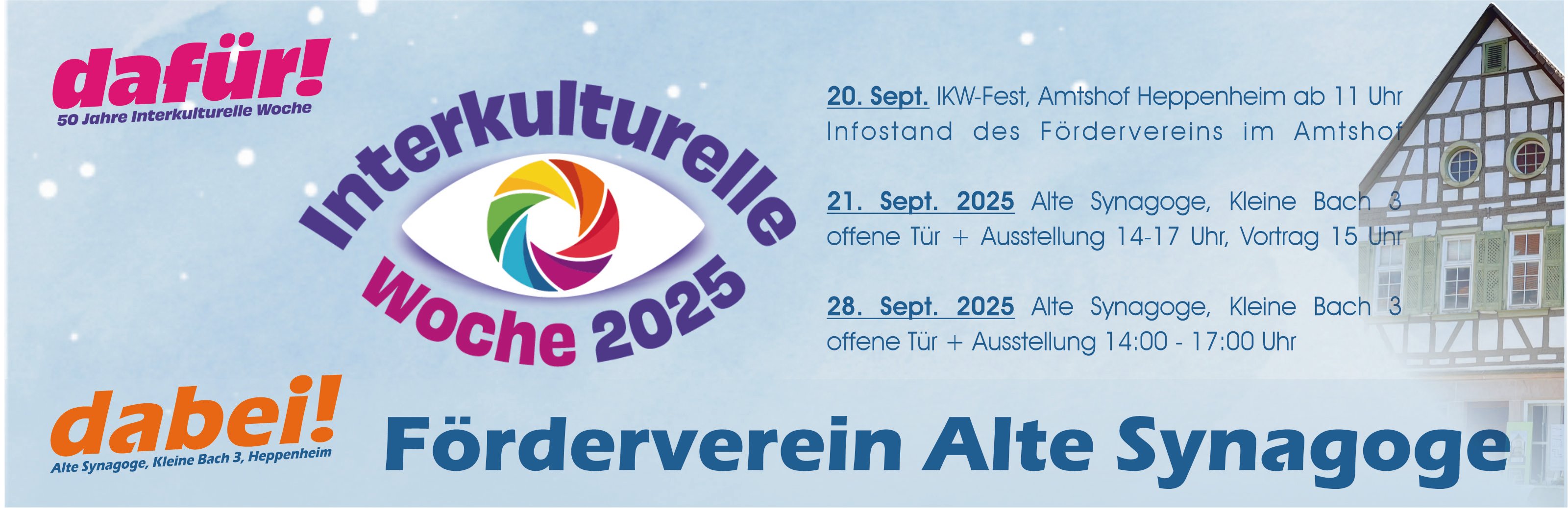 Und wir als Förderverein Kulturdenkmal Alte Synagoge Heppenheim sagen: "Wir sind dabei!" – Denn jüdisches Leben ist ein unverzichtbarer Teil unserer kulturellen Vielfalt. Die Interkulturelle Woche steht für Offenheit, Dialog und gegenseitiges Verständnis. Werte, die auch das jüdische Erbe in Heppenheim geprägt haben und die heute aktueller denn je sind.
