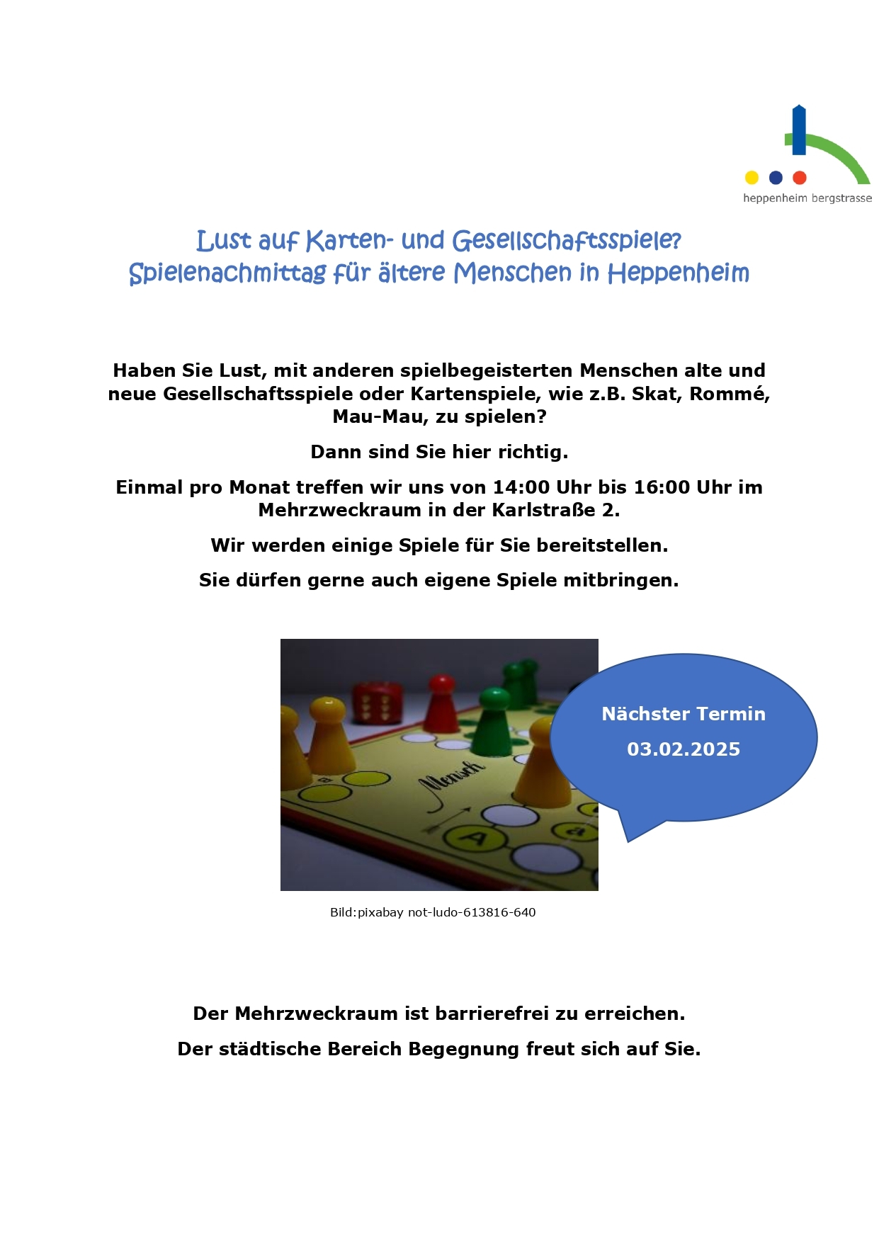 Lust auf Karten- und Gesellschaftsspiele? Spielenachmittag für ältere Menschen in Heppenheim